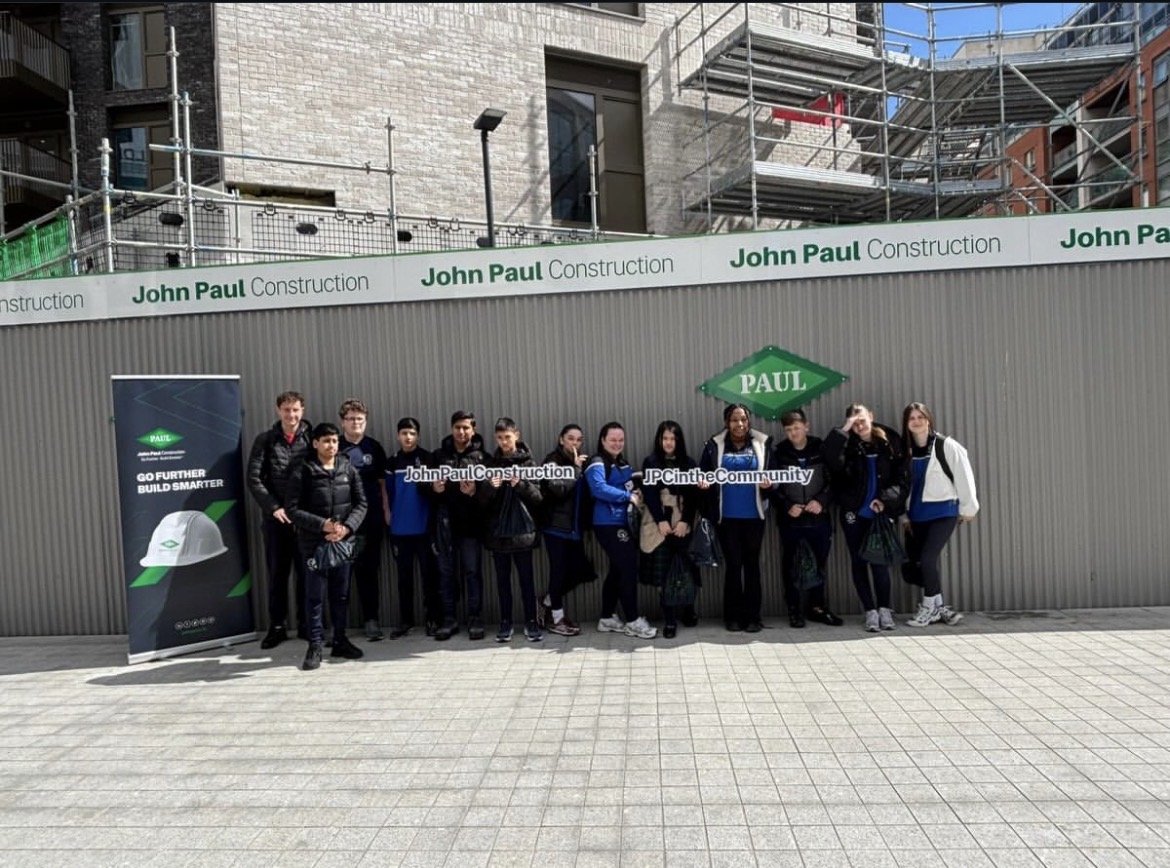During the tour, students were guided around the site and given insight into the different stages of construction. They also had the chance to hear directly from members of the John Paul Construction team, who spoke about their career paths and the routes they took after finishing school.