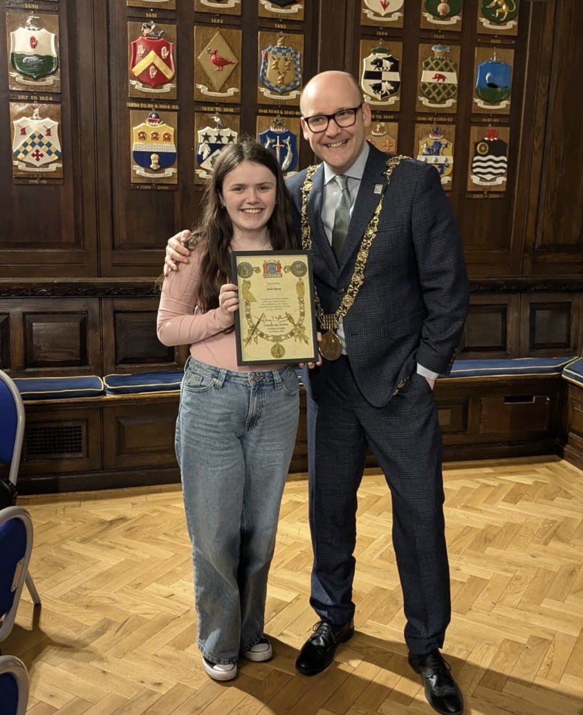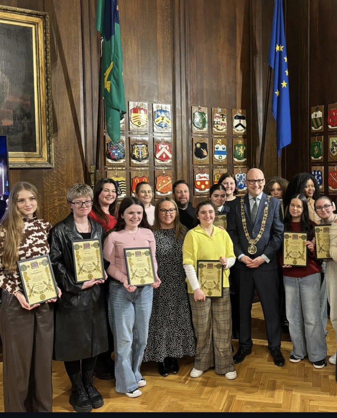 Students from Larkin, alongside participants from SWAN Youth Service, were recently honoured by the Mayor in recognition of their contribution to the arts through their involvement in the Halloween Macnas Parade in Dublin and Galway.